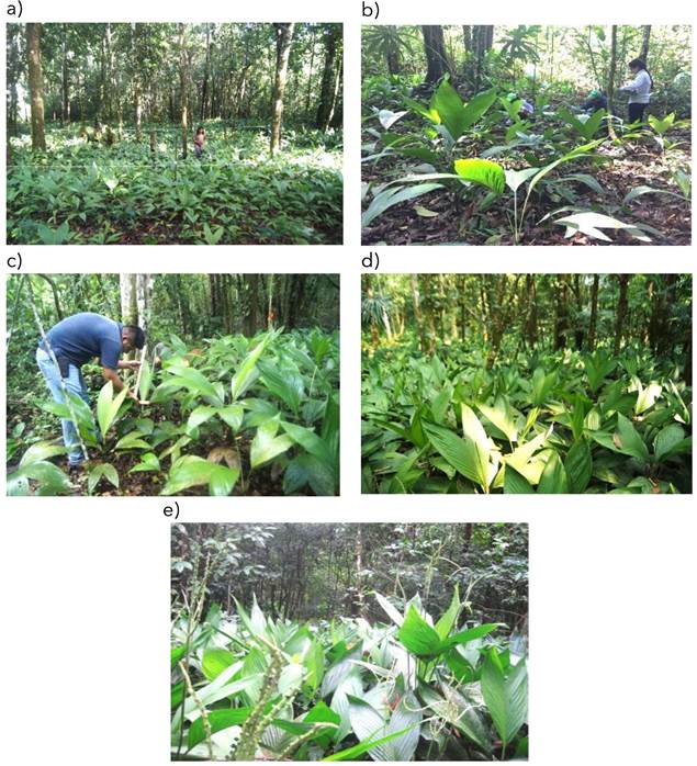 Además, la selva alberga importantes productos forestales no maderables (PFNM) de gran valor económico, como la vainilla (Vanilla planifolia Jacks. ex Andrews), el cacao (Theobroma cacao L.) y la palma camedor (Chamaedorea spp.) (Buda et al. 2014, 2017, Navarrete-Segueda et al. 2017). Estos productos no solo contribuyen a la economía local, sino que también desempeñan un papel crucial en la conservación de los ecosistemas y en el desarrollo de prácticas sostenibles (Shackleton y de-Vos 2022). A pesar de la relevancia ecológica de la Selva Lacandona, su superficie ha disminuido en las últimas décadas, debido a la expansión de terrenos destinados a la agricultura y la ganadería, lo que ha provocado graves pérdidas en la diversidad biológica (Martínez-Ruiz et al. 2025). En respuesta a esta situación, se han promovido acciones orientadas al manejo sostenible de los recursos naturales. Una de estas iniciativas, en el ámbito agrícola y silvícola, es el establecimiento de sistemas agroforestales (SAF), que integran cultivos como el cacao, el café y la palma camedor (Chamaedorea spp.) en ambientes forestales (Andrade et al. 2024). La Chamaedorea ernesti-augusti tiene la capacidad de desarrollarse bajo el dosel de los árboles y en vegetación secundaria (acahuales), contribuyendo a la conservación de la biodiversidad en zonas de alta diversidad o en áreas vulnerables a la degradación ecológica (Granados-Sánchez et al. 2004).