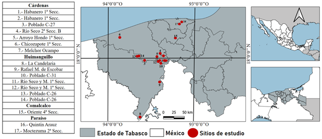 Tabla 1 Características principales de los sitios de estudio en el estado de Tabasco, México