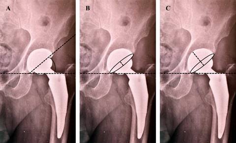 La artroplastía total de cadera (ATC) es uno de los procedimientos quirúrgicos más realizados a nivel mundial, como tratamiento para las patologías degenerativas, traumáticas y secuelas de alteraciones que afecten la articulación de la cadera;1,2 brinda niveles altos de satisfacción, mejoría en el dolor, función y adaptación a las actividades de la vida diaria, con excelente pronóstico a largo plazo.3,4,5,6 La mala orientación del componente acetabular tiene impacto directo en el riesgo de luxación y desgaste del polietileno.7,8 El método de Widmer es un método reproducible, fácil de usar que sólo requiere una radiografía anteroposterior de pelvis con adecuada técnica;9,10,11,12 tiene como objetivo cuantificar los grados de anteversión e inclinación del cotilo y determinar si se encuentra dentro de la zona segura de Lewinnek (ZSL) para tratarse de una orientación estable.13,14
