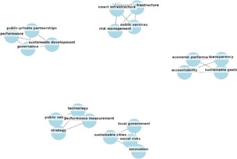 La gobernanza de las APP ha evolucionado hacia un enfoque más alineado con la sostenibilidad y el desarrollo de infraestructura verde. La nube de palabras (Figura 3) resalta términos como “public”, “private”, “sustainable” y “performance”, lo que evidencia la prioridad otorgada a modelos colaborativos entre el sector público y privado, con énfasis en la eficiencia y el impacto ambiental. En general, la Figura 3 muestra que la gobernanza de las APP se ha consolidado en torno a la sostenibilidad, la eficiencia financiera y la transparencia, fortaleciendo la colaboración público-privada para el desarrollo de infraestructura con impacto social y ambiental positivo.