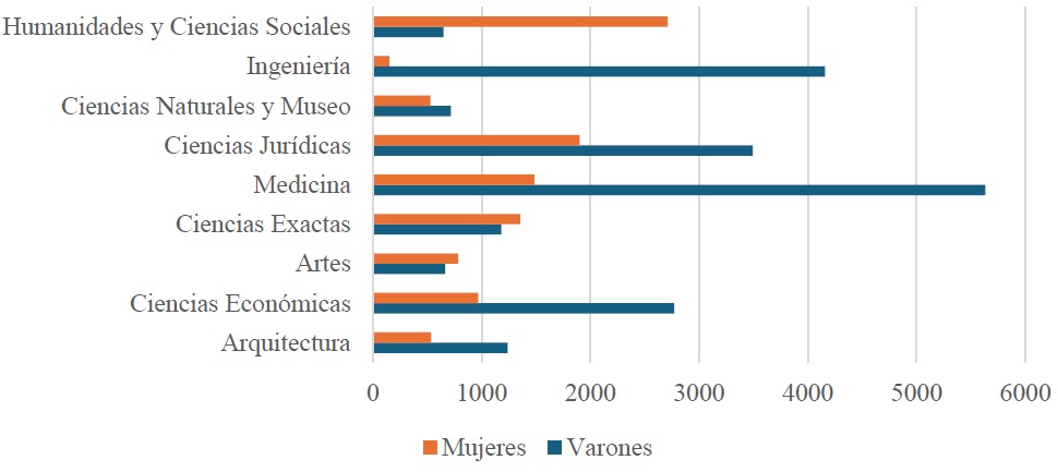 Dora Barrancos (2010), en su clásico Mujeres en la sociedad argentina sostiene que el ingreso masivo a las casas de altos estudios fue una de las experiencias más destacadas de las mujeres de la década de 1960, principalmente de aquellas de clases medias urbanas, pero no exclusivamente. Aunque con referencias estadísticas centradas en la Universidad de Buenos Aires, la autora encuentra que en el transcurso de esa década una buena cantidad de carreras se poblaron de mujeres, llegando a representar la mitad del estudiantado. Esto no sólo en las Humanidades y Sociales, sino también en Derecho, Arquitectura y Medicina. Ahora bien, cabe mencionar lo que Barrancos (2010) nombra como datos centrales de la “inmovilidad de las relaciones de género en las universidades” (p. 223), a pesar de que las aulas y los espacios de militancia se habían poblado de mujeres, los varones dominaban por completo la escena en las cátedras y en la enseñanza, en los cargos de gestión y en las direcciones de las organizaciones estudiantiles.