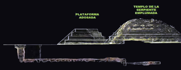 Fig. 4 Teotihuacan. Sección transversal del templo de la Serpiente Emplumada con túnel debajo. Proyecto Tlalocan / Instituto Nacional de Antropología e Historia, 2017.