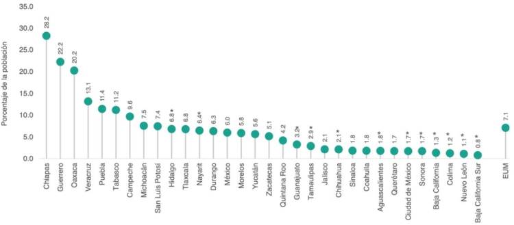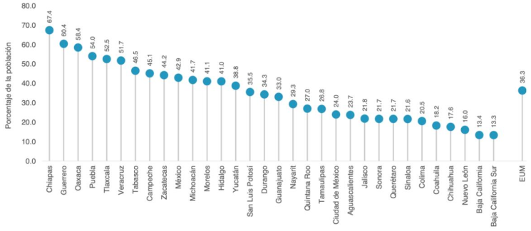 Porcentaje de la población en situación de pobreza por entidad federativa