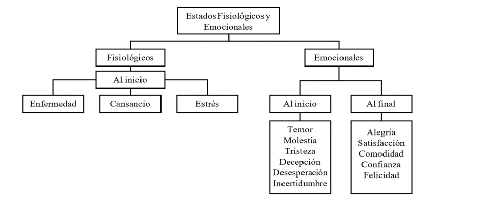 En lo que concierne a los “estados fisiológicos y emocionales”, los resultados muestran que en general los futuros profesores al iniciar sus primeras prácticas experimentaron incertidumbre, preocupación, temor y tristeza. Compartieron que físicamente se sentían cansados, estresados y enfermos. El participante dos comentó