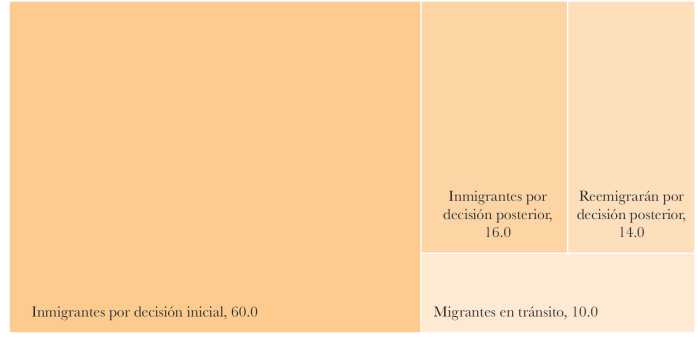 La salida del país, el tránsito y la llegada a un nuevo país son momentos icónicos que marcan la experiencia migratoria internacional de las personas. Durante el “tiempo expuesto a la migración internacional”, entendido como el lapso que ha durado el proceso migratorio (número de años, por ejemplo) desde la salida del país de origen hasta el presente, las condiciones de viaje y de vida cambian y dependen de los recursos con los que cuente la persona en movimiento. En esa experiencia migratoria la elección del país al cual migrar suele determinarse por la experiencia migratoria previa, por la experiencia migratoria ajena (familiares, amigos o paisanos) e, incluso, irse definiendo en el viaje migratorio. De la misma manera, los vínculos o redes sociales moldean la experiencia migratoria en la búsqueda de un lugar para descansar o vivir, en el acceso a alimentos, atención médica, regularización migratoria, el conocimiento de la ciudad, entre otros.