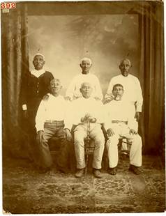 Finalmente, en la cuarta sala se encuentra un caso que resulta excepcional en varios sentidos, ya que muestra cómo la ubicación puede reforzar una intención particular de los objetos. Se trata de tres fotografías de los descendientes de Cosijoeza, rey de Zaachila,25 que al parecer formaban parte de una serie más extensa de retratos de estudio, hechos en Oaxaca, de los familiares de este gobernante a quien tocó recibir a los españoles que llegaron en el siglo XVI.26 La Imagen 6 corresponde a la segunda foto del grupo: es un retrato grupal vertical en el que aparecen algunos de los descendientes: José Antonio, Leandro, Pablo, Manuel, Eulalio y Victoriano Pérez Velasco (Catálogo de México, 1893: 58-59).
