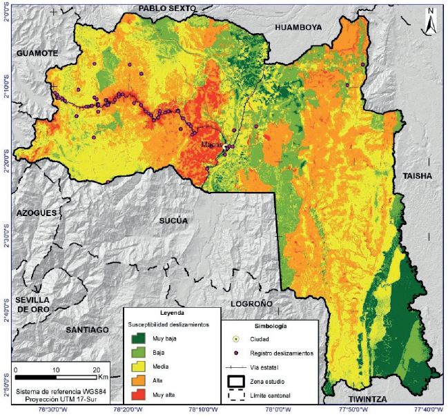 Por tanto, esta investigación considera a la región amazónica del Ecuador como zona de análisis, específicamente en el cantón Morona, con el objetivo de generar un modelo de susceptibilidad a deslizamientos mediante la aplicación y comparación de lógica difusa y Mora - Vahrson, de manera que permita determinar el método que mejor se ajuste a la realidad geográfica y sirva como insumo para la identificación de potenciales zonas de riesgo y la toma de decisiones.