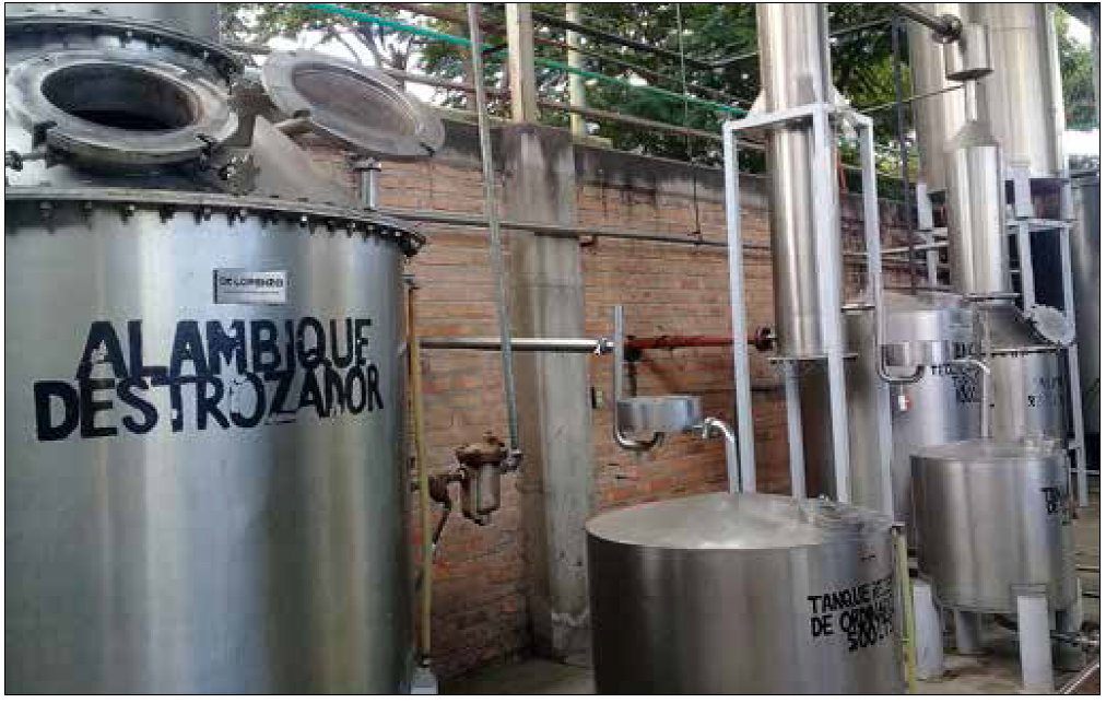 El último paso en la elaboración de tequila es la destilación, en la que se somete a evaporación el mosto fermentado. Para ello se requiere el uso de alambiques, que han sido de cobre o de barro (Gómez, 2006: 108). Los primeros de estos fueron importados de Francia (Muriá, 2016: 84). Luego aparecieron los alambiques de acero inoxidable.