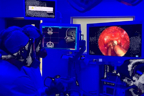 Cirugías de cavidades nasales (endoscópicas, microscópicas y abiertas) de cavidades nasales se consideran de alto riesgo por ser reservorios de alta carga viral. 28,41,42 La experiencia internacional sugiere que existe un riesgo significativo de transmisión infecciosa por COVID-19 en PGA, incluida la cirugía transnasal endoscópica (TNE) 23,41-43 con posibilidad de que las máscaras N95 y EPP apropiado no prevengan la infección. 25,44 Es recomendable diferir la cirugía TNE electiva; (28,31,45 de no ser posible, se debe considerar un enfoque transcraneal 25,28,44),(46 y uso de mascarillas completas con filtros con certificación P100 (Figura 2 y Figura 3)
