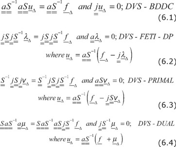 2. Four algorithms the DVS-algorithms [Herrera et al., 2011]-, which were derived using the DVS-discretization and achieve the DDM-paradigm have been explained. Two of them are the result of using the BDDC and FETI-DP algorithms after applying DVS-discretization to the boundary value problem considered. The other two are obtained when two new algorithms, which had not been reported previously in the literature, were used instead;