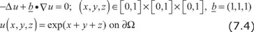 This is an advection-diffusion transport problem in 3D, for which the differential operator is not self-adjoint.