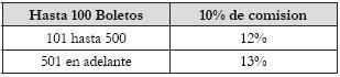 Otra estrategia utilizada es la de comisiones por venta de boletos en volumen, las cuales se otorgan de la siguiente manera: