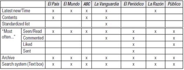6The option "Management" (comment, print, etc.) as defined by Guallar and Abadal has been excluded from this section, because none of the dailies sampled provides this option in the search results.