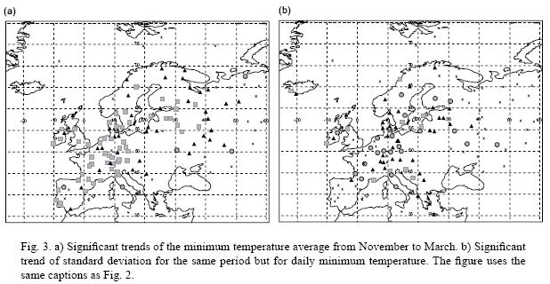In this section, the main results obtained in our study are summarized. One hundred and thirtyfive complete and homogenous series of distributed daily minimum temperatures in 34 European countries were considered from 1 January 1955 to 31 December 1998.