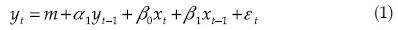 Remplazando y1 con yt-1 + Δyt y xt con xt-1 + Δxt en (1) obtenemos