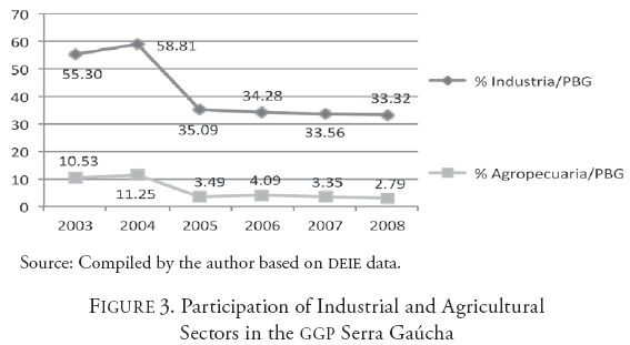 As for the composition of the product in the Serra Gaúcha region, the wine industry has accounted for 30 percent more of the GGP than the agricultural sector in recent years (Figure 3).