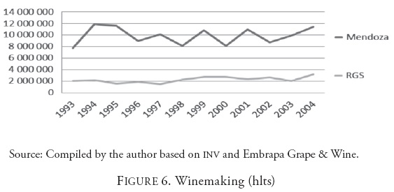 One of the constraints of the study is the lack of information available on winemaking at the municipal level in Brazil. Consequently, the definition of the geoFigureical area of wine indicators often refers to the region of Rio Grande Do Sul, and not specifically in the winemaking area of Serra Gaúcha. A similar situation occurs when economic and socio-demoFigureic indicators are analyzed. In the case of Mendoza, the information always refers to the province of Mendoza, with the exception of the employment rate, corresponding to Greater Mendoza region.