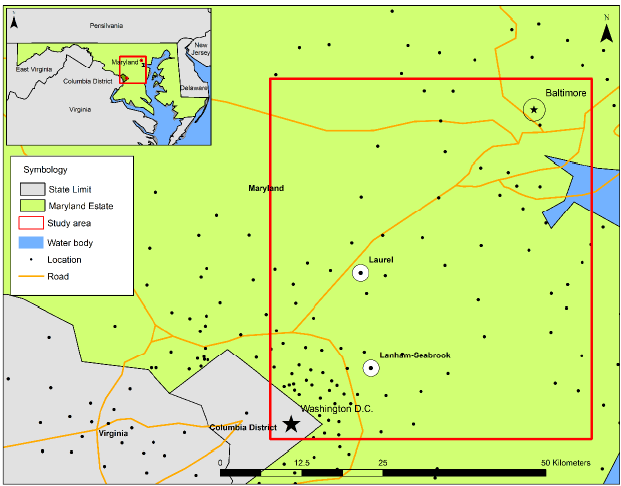 Map 2. Destination of the respondents: WashBalt corridor and area of the Buenavista enclave