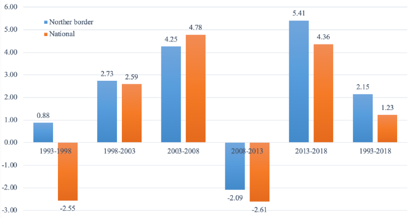 Table 3. Growth rates for the northern border region (1993-2018)*