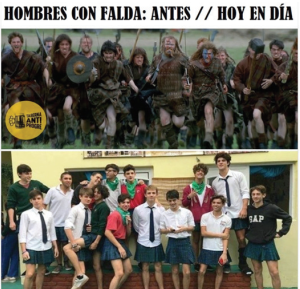 Finally, in relation to the neutral uniform initiative, the use of images in which boys are wearing skirts and, in some cases, a green scarf, was identified, as well as letters in rainbow tones to contrast them with the clothing of male revolutionaries of other times. This results in a contrast between a historically constructed imaginary based on masculinity and masculinities which, from their perspective, attempt to create what they call a progressive ideology.