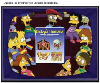 In coercive memes against sexual dissidence, a naturalization of gender can be observed when trans identities are ridiculed on the grounds that gender is determined by sex. According to the specialist in psychiatric ethics, Giordano (2018), this can be explained by the fact that “the way we see biological facts is filtered by our assumptions regarding how people should be” (p. 108). However, various gradations that prevail in the spectrum from male to female make it possible to identify more than two sexes and genders: