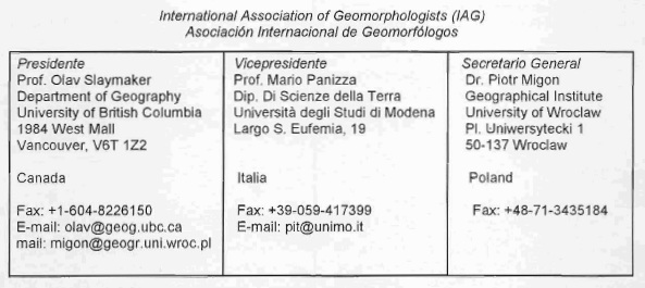 Asociación Internacional de Geomorfólogos (IAG) Newsletter No. 17 (3/2000) y (4/2000)
