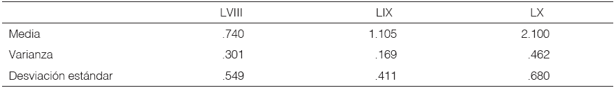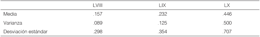 Tabla 2: Gestiones de las comisiones legislativas seleccionadas. Media aritmética por legislatura