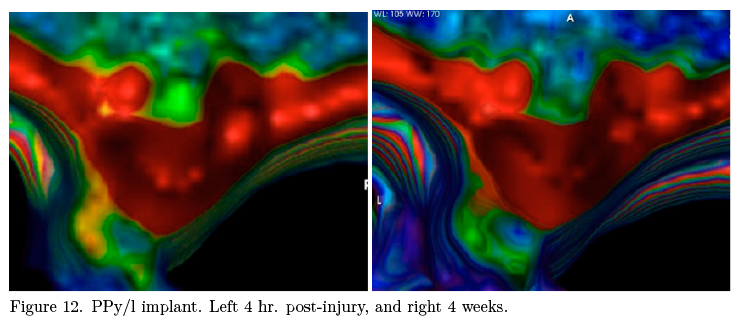 Estudios CAT y MRI en ratas con lesión de médula espinal con implantes de PPy/I