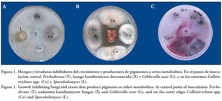 En cultivos sólidos, las colonias variaron en función de la composición del medio (Cuadro 2). En algunos casos el micelio fue raso los primeros días de crecimiento, y aéreo al final; en otros, el micelio