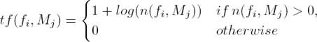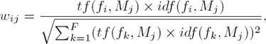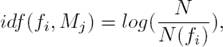 in which F is the number of the used features, n(fi, Mj) is the number of occurrences of feature fi in the SMS text message Mj, N is the number of SMS text messages samples and N(fi) represents the number of SMS text messages samples in which feature fi occurs at least once.