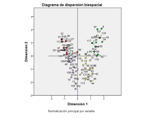 En las Figuras 3 y 4 se puede apreciar la agrupación de los municipios en los cuatro cuadrantes o grupos según condición de recepción de migrantes de retorno, las variables socioeconómicas que son causales de su sesgo en la llegada desde el exterior. Los grupos se dividen de la siguiente manera: