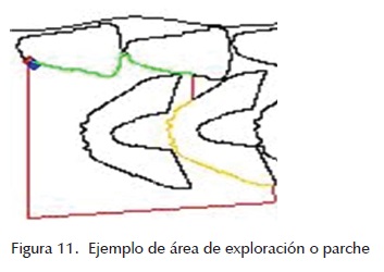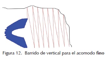 Posteriormente se lleva la pieza al borde inferior del área de exploración, avanzando en dirección horizontal repitiendo la operación hasta que la pieza salga de ella (figura 12).