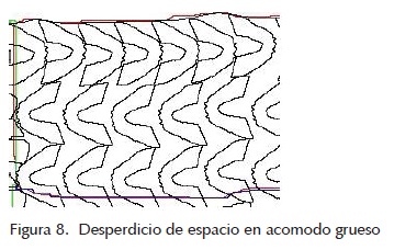 La metodología de acomodo en dos etapas presenta buenos resultados, ya que la cantidad de piezas acomodadas se incrementa al usar en combinación los acomodos grueso y fino aprovechando mejor el material, como se muestra a continuación.