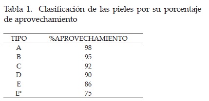 Una vez definida la orden de producción, se selecciona un conjunto de pieles con la cantidad de piel necesaria para realizar las piezas. Para esto se considera la cantidad de piel por cada zona de calidad de las mismas, determinada por las partes a acomodar en cada zona, así como la distribución de los diferentes tipos de piel existentes en el almacén. El costo de producción queda severamente afectado por la cantidad de pieles seleccionadas de cada tipo (tabla 1).
