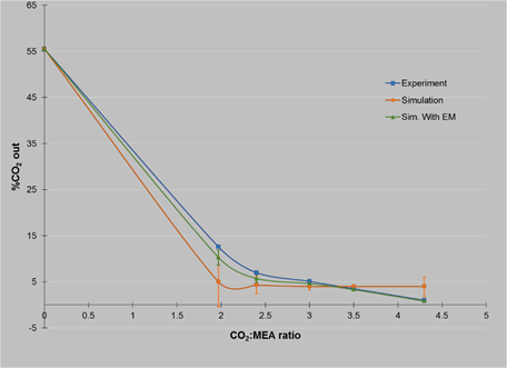 | %CO2 in | MEA, ml/min | Mol CO 2 | Mol MEA | %CO 2 out exp | %CO 2 out sim | % η A | % E M | %CO 2 sim. with E M |