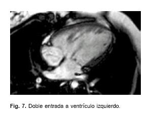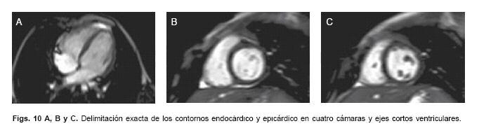 En pacientes pediátricos en especial el método tiene una aplicación importante ya que al contar con una excelente resolución espacial delimita claramente el contorno endocárdico y epicárdico, lo que permite una valoración exacta del engrasamiento y masa miocárdica. Se ha planteado la posibilidad de calcular la masa ventricular derecha, la cual se dificulta por la configuración marcadamente trabeculada, sin embargo es posible2 (Fig. 10).