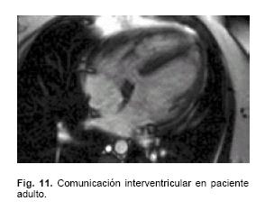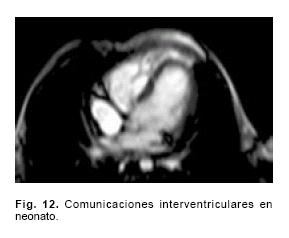 Comunicación interatrial e interventricular. Los defectos septales son causas comunes de cortocircuitos en ocasiones detectados hasta la edad adulta (Figs. 11 y 12).