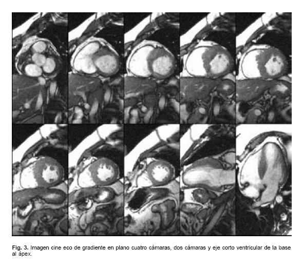 En el caso de las cardiopatías congénitas el uso de cines eco de gradiente permite una adecuada, rápida y reproducible valoración ventricular en ejes cortos de la base al ápex, método con el que se obtiene un valor cuantitativo de la función ventricular izquierda y derecha, así como del flujo volumétrico.