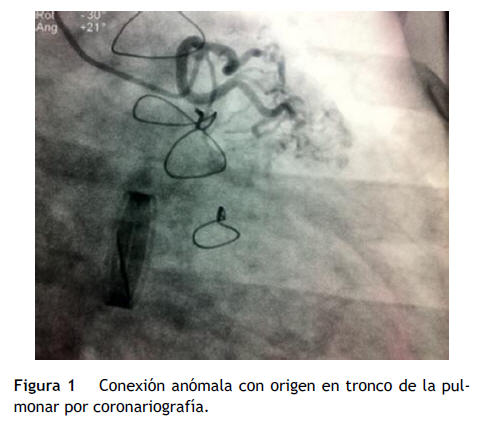 Las anomalías de las arterias coronarias constituyen del 0.2 al 1.2% de las cardiopatías congénitas aproximadamente1. La implantación de la arteria coronaria izquierda desde el tronco de la arteria pulmonar también conocida como síndrome de Bland-White-Garland es la anomalía coronaria más frecuente2,3.Las manifestaciones clínicas son derivadas de la isquemia miocárdica consecuencia del cortocircuito arteriovenoso y la presencia de cardiomegalia asociada a insuficiencia cardiaca es un hallazgo común en población infantil con menor prevalencia en población adulta4,5, dado que estos comienzan habitualmente con problemas relacionados con síndromes coronarios agudos, síndrome de insuficiencia cardiaca o muerte súbita6.