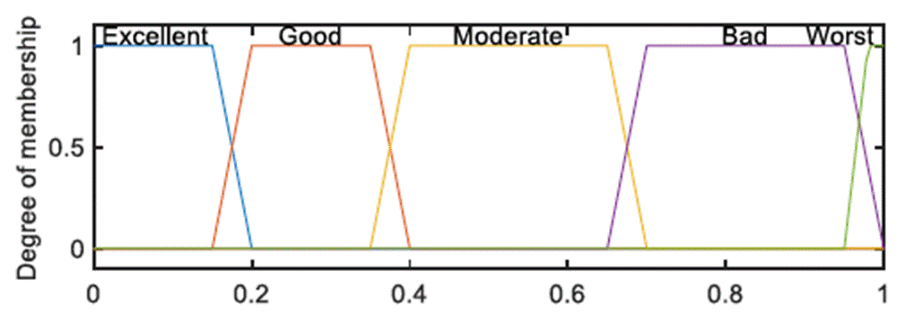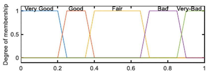 The implementation of a FIS-based methodology requires the fuzzification of input data for each criterion, which is often given in numerical values. The fuzzification process involves the definition of membership functions (i.e., related with linguistic variables as good, fair, bad, etc.) which represents states of condition for each criterion into its numerical range of variation.