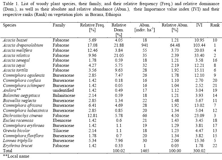 Keywords: Acacia drepanolobium; Borana; Bush encroachment; Importance value index; Invasiveness; Livelihood security; Rangeland ecology.