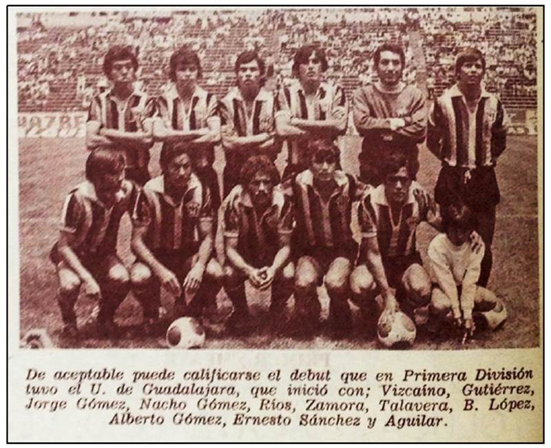“It can be qualified as an acceptable debut, the one that had the U. of Guadalajara in the First Division, which started with: Vizcaíno, Gutiérrez, Jorge Gómez, Nacho Gómez, Ríos, Zamora, Talavera, B. López, Alberto Gómez, Ernesto Sánchez, and Aguilar.”