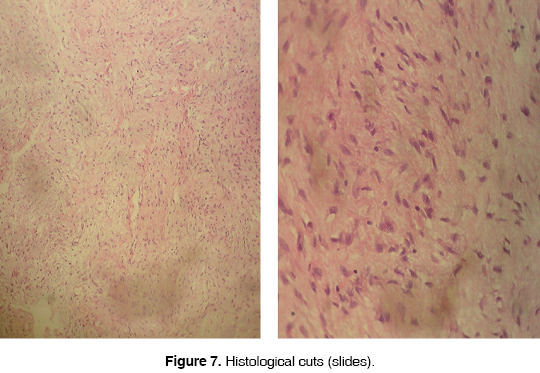 Based on the anatomical and pathological study the diagnosis of desmoid tumor was confirmed. The patient presently shows favorable evolution, facial paralysis in remission, no recurrence data, and is under strict surveillance (Figure 14).