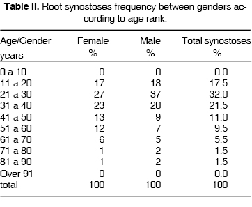 In the total 1,000 patient sample, after radiographic examination, a 29.9% of root synostoses were ascertained. In the present study we found a greater statistical difference than that found in consulted authors.5