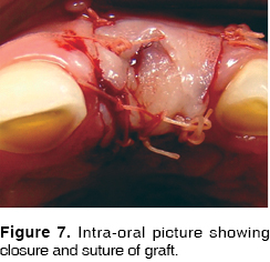 Extreme ridge resorption causes aesthetic problems, especially in the anterior region of the upper jaw. Several restorative prosthetic techniques have been developed to solve this problem. Several surgical techniques can be used according to the case to increase the alveolar ridge. Langer and Calagna introduced a technique which consisted in dealing with subepithelial connective tissue grafts.5 Garber and Rosenberg introduced the technique of connective tissue graft after preparing a sac-shaped flap in the receptor bed.6