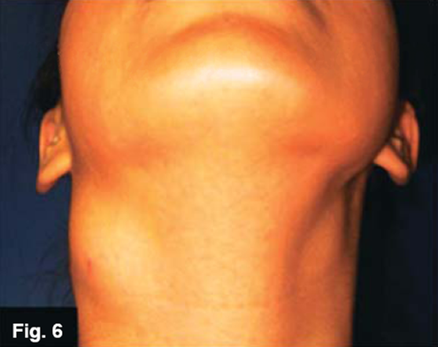 Tumor in the region of the right carotid triangle of three month evolution. Lesion measured 35 × 20 mm, was mobile, indurated and adhered to superficial planes (Figures 5 and 6). Patient denied presence of trauma, infections or change of habits. No pain or fever peaks were reported. Thoracic X-ray study yielded positive, FNAB yielded non specific inflammatory results. Tumor was excised resulting in mycobacterium tuberculosum granulomatous infection. Zeihl-Neelsen test was negative, Löwenstein-Jensen test was positive.
