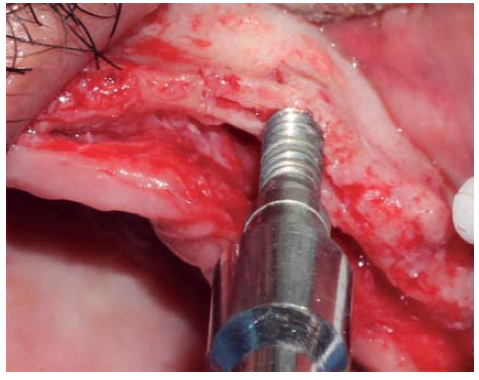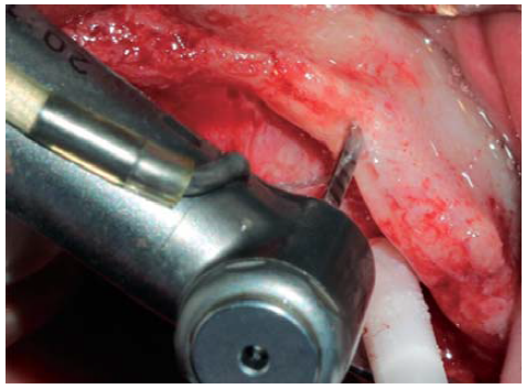 Figure 8 Bone expander placed distally with respect to the preparation, avoiding a fracture of the vestibular table.