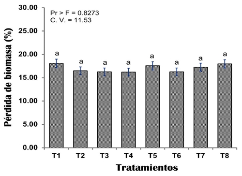 Fresh biomass began to decrease and was constant between treatments until the end of the experiment and there were no significant statistical differences (Figure 4).