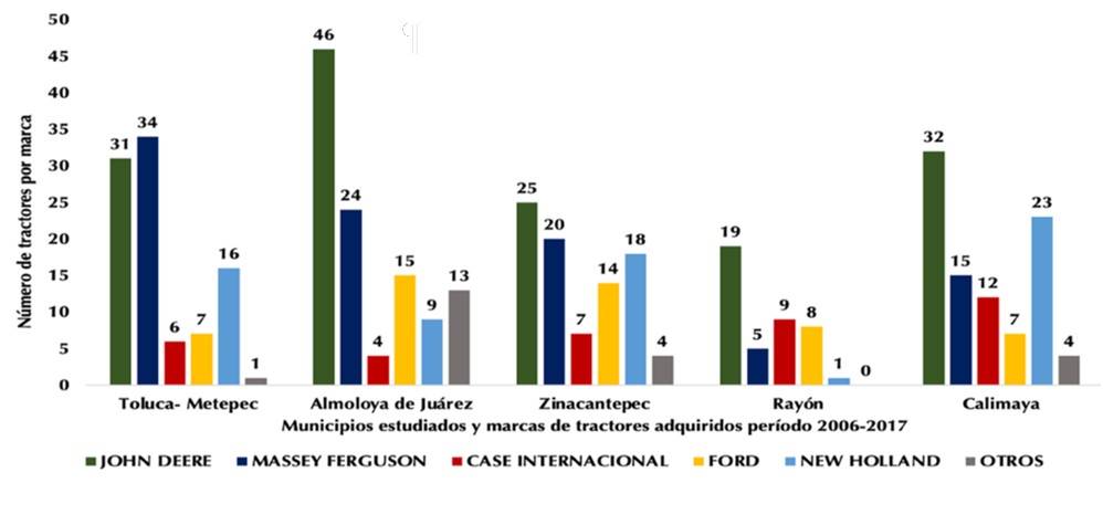 In this analyzed area of the Toluca Valley, it is observed that the driving force in the sale of agricultural tractors has the John Deere brand as a leader in all municipalities and only in the municipality of Toluca and Metepec, the Massey Ferguson brand is above. It is important to note that, in tractor-producing countries, such as Germany, the John Deere brand is marketed above local tractors, similar cases are Bulgaria, France, all this until 2017, something that does not happen in countries such as Austria, Croatia, Denmark, etc., where this brand becomes almost unnoticed, giving way to tractors and agricultural machines of European production.