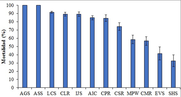 | Planta | Clave | Mortalidad de larvas (%) |